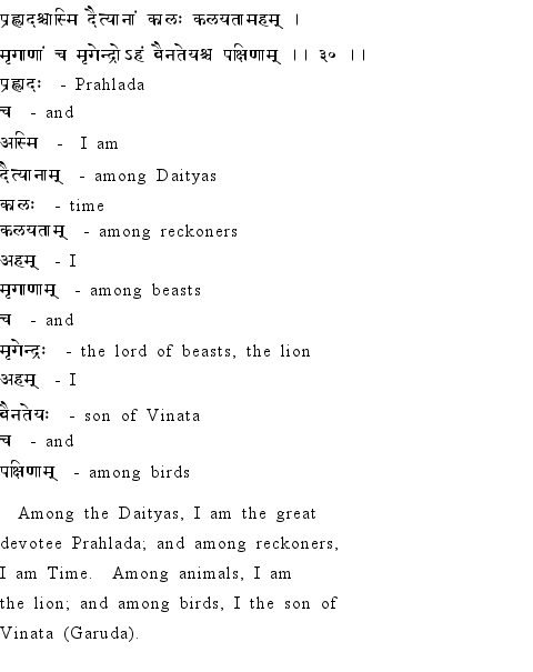 Srimad Bhagavad Gita Sloka selected for the day (random choice) Chapter 10 Sloka 30